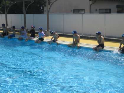 今日は天候もよく、子供たちはプール学習を楽しみました。けのびや浮く練習をした後、最後には、どのくらい泳げるか挑戦しました。子供たちは、「1年生のときよりも記録を伸ばしたい」と目当てももち、意欲的に学習に取り組んでいました。