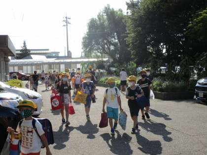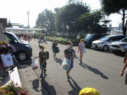 子供たちは、夏休みに取り組んだ作品や自由研究を両手いっぱいに抱え、元気に登校してきました。朝の挨拶もとても元気です。