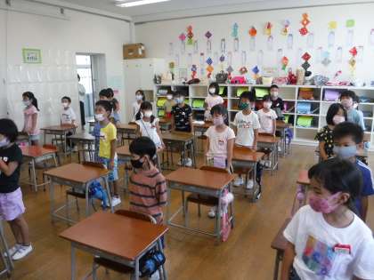 8月27日、長い夏休みが終わり、子供たちが学校に登校してきました。友達に会うと、夏休みに頑張ったことや楽しかったことをたくさん話していました。