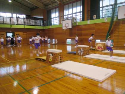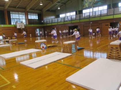 学年で体育をしました。2学期は、跳び箱運動やマット運動をします。全員で協力して用具の準備を素早く行う姿に感心しました。