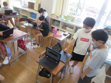 夏休み中の出来事や自由研究等の夏休み作品展について、学級で話し合いをしました。Chromebookでまとめたものを見せ合いながら、夏休みをどのように過ごしていたのか話したり、自由研究の見所や工夫したことを説明したりしました。