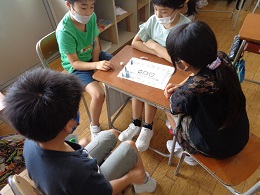 2学期から新しいALTの先生を迎えて、外国語活動の授業が始まりました。みんなで楽しみながら時刻の言い方や尋ね方の練習をしています。