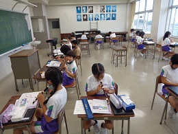 音楽科では、「陽気な船長」をリコーダーで演奏しています。スタッカートを意識しながら、リズムよく演奏できるように頑張っています。
