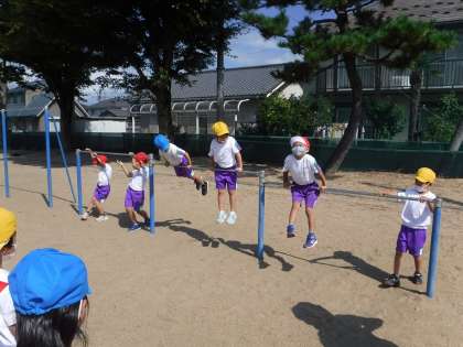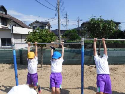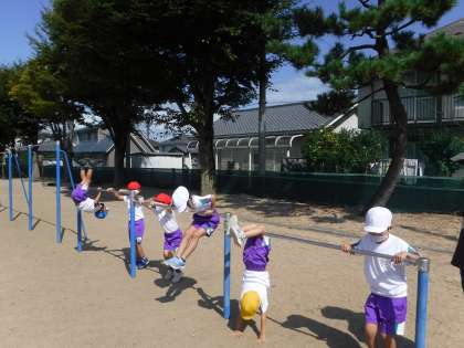 1年生は、鉄棒に親しんでいます。