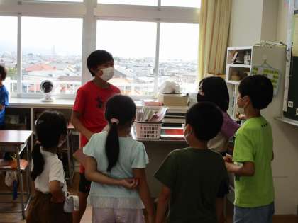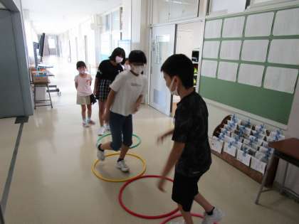 今日は、20分間の長い活動を行いました。校舎内には、子供たちの笑い声がたくさん響きました。活動を考えた6年生も喜んでいました。