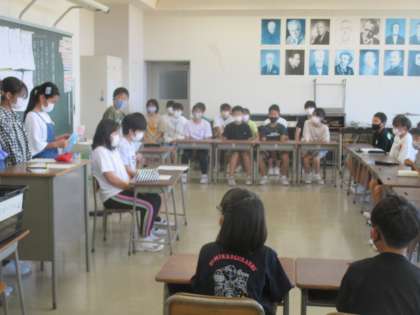 代表委員会がありました。5年生の運営委員会の子供たちが、6年生の助言をもらいながら司会をしました。少しずつ自信を付けていってほしいです。