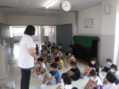 先週より、学年みんなで学習発表会にむけて「くじらぐも」の練習を始めています。