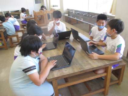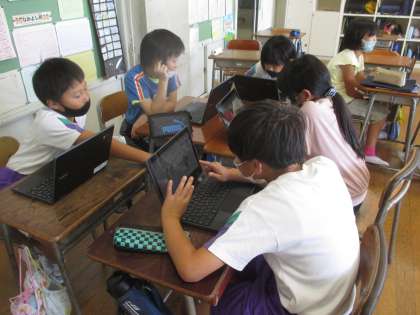 総合の時間に、環境をよりよくするために立てた活動計画をクロムブックで互いに見合い、アドバイスをしました。そのアドバイスを基に、自分たちの活動計画を改めて見直す時間となりました。