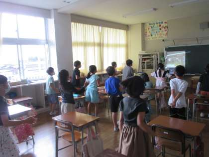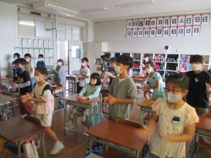 今日のきらりタイムは、運動委員会が作ってくれた運動ダンスを行いました。動画に合わせてその場でスキップやスクワットを行い、元気に体を動かしていました。