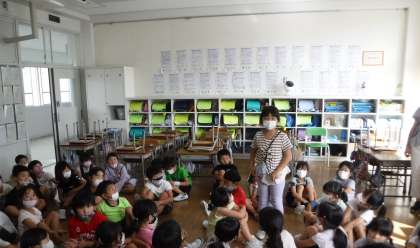 もうすぐ校内発表会なので、今日は、「くじらぐも」の発表をビデオに撮って、みんなで見てみました。