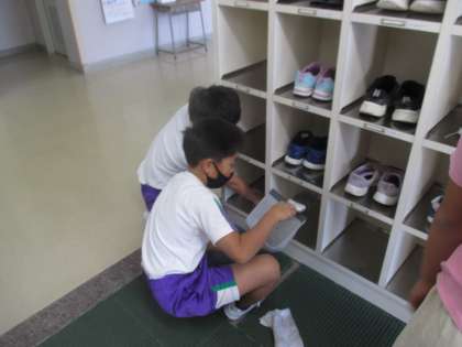 朝のさわやかタイムの時間には、自分でできることを考えて、進んで活動する姿が見られます。上学年として、がんばっている4年生です。