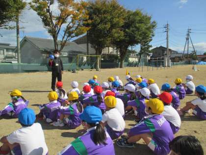 体育科で「ボールけりゲーム」をしました。友達にパスをしたり、シュートしたりする練習を重ね、実際にゲームをしました。初めてのゲームで、戸惑う姿が見られましたが、「友達にパスを出せたよ」「シュートを止めることができたよ」と話をしていました。これから回数を重ね、友達と楽しみながら、粘り強く取り組む姿が見られるよう支援していきます。