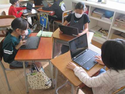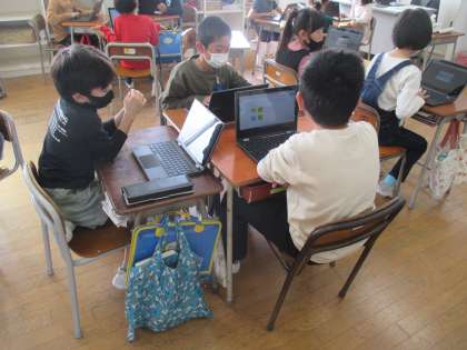 総合的な学習の時間では、萩浦地区でこれまで以上に安心に暮らせるように安全を呼びかける地図を作ります。萩っ子にとって必要な情報を地図に載せられるように、地図に表すことを相談中です。