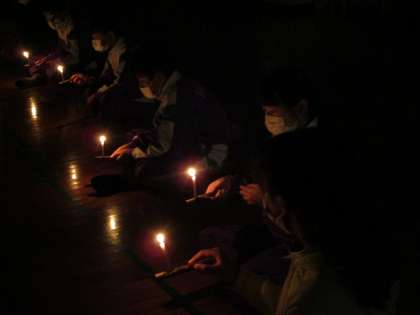 写真は 1日目の夜のキャンドルサービス・2日目の森の家づくりです。