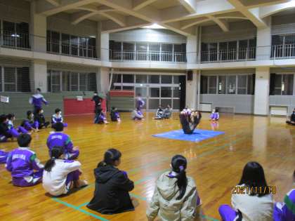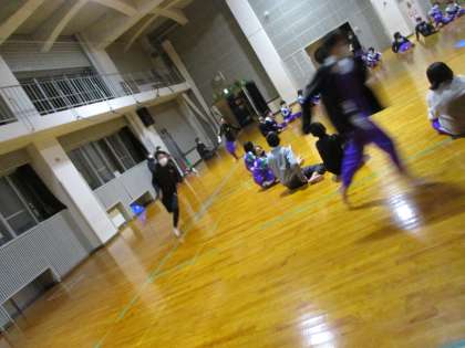 集会の様子です。学年でハンカチ落としをしました。いつもは下学年のために遊びを考えて進めている6年生ですが、今日は心から楽しんで遊んでいました。