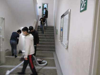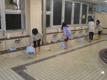 自分の担当の仕事もがんばっていました。お風呂場も館内もぴかぴかです。