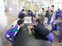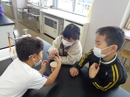 理科では、空気や水をあたためたり冷やしたりすると体積はどのように変化するのか調べました。協力して実験を行い、実験結果から考えられることを、それぞれの言葉で表現していました。
