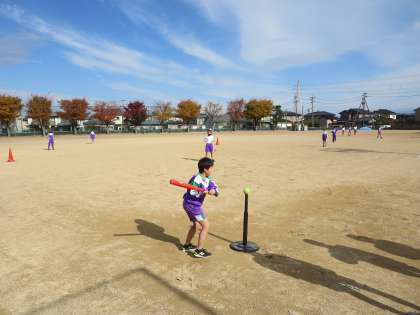 気持ちのよい青空の下で、体育の時間にティーボールを行いました。子供たちは、バットでボールを打ち遠くへ飛ばす練習をしたり、飛んできたボールをアウトゾーンまでうまく運ぶためにどうしたらいいか考えたりしていました。安全に気を付けて、みんなが楽しく活動できるように互いに声を掛け合っています。