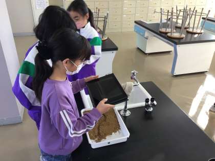 理科の学習で、流れる水のはたらきについて実験しました。流れていく水の様子をChromebookで撮影することで、実験の様子を何度も見返しながら、流れる水のはたらきについて考えることができました。