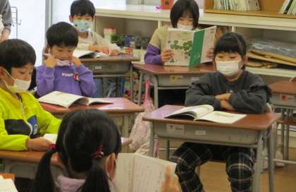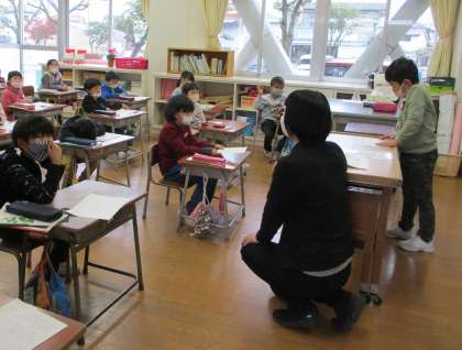 国語科では、「ものの名まえ」の学習をしました。「1つ1つの名まえ」と「まとめてつけた名まえ」について学習し、身の回りのものからたくさん言葉を見付けていました。