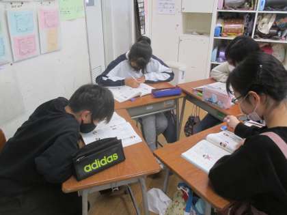 席替えをしました。新しいグループの友達と協力して、難しい漢字クイズにすらすらと回答することができました。