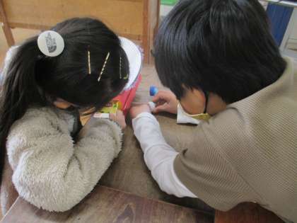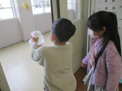 生活科の学習で、動くおもちゃ作りをしています。風やゴムなどの力を利用して動く仕組みになっています。子供たちは、友達と協力しながら作ったり、上手くいかないところをアドバイスし合ったりしながら、どんどんおもちゃをパワーアップさせています。みんなで遊ぶのが楽しみです。