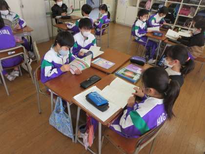 今日は自学ノートを見合って、互いのノートのよさを見付け伝える活動を行いました。「大事なところに色をつけることで見やすいノートになっているね」「自分の好きなことを調べてまとめてあるページがいいなと思ったよ」「苦手な問題にたくさん挑戦していてすてきだな」など、互いのノートのよさをたくさん伝え合い聞き合っていました。友達のノートから刺激を受けて、自分の自学ノートに生かしてほしいと願っています。
