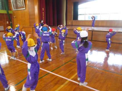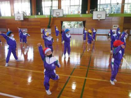 体育科の学習で、表現遊びを始めました。いろいろな動物になりきったり、跳ぶ、回る、ねじる、走るなど次々と動きを変えて動いたりと、全身を使って表現遊びをしています。