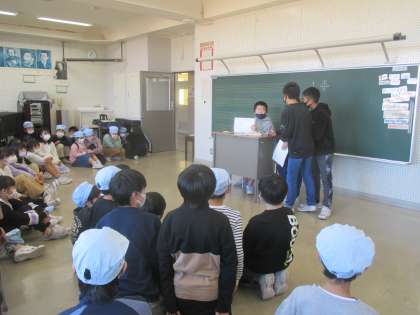 今週は、6年生との交流会がありました。一緒に紙飛行機を飛ばしたり、クイズをしたりと6年生が考えた企画を楽しむことができました。