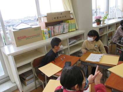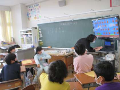 2学期最後の外国語活動は、「2学期のまとめをしよう」を学習課題とし、学習を行いました。「Do you like〜?」の表現を中心に、好きな食べ物やスポーツを話しました。最後のゲーム活動では、友達の発表をよく聞き、大盛り上がりしていました。