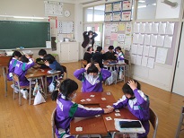 3学期最初の外国語活動では、フルーツの単語を覚えるためにゲームを行いました。先生の発音をよく聞き、楽しそうに取り組んでいました。