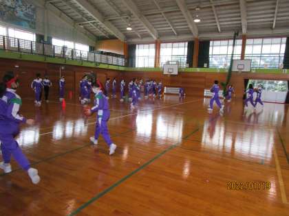 今日は、学年体育の時間にパス練習をしました。チェストパスとバウンドパスを中心に練習をしました。最後にパスを使った簡単なゲームもしました。子供たちも楽しそうに活動していました。