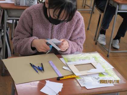 図画工作科では、写真立てを作っています。思い出の一品になるように心を込めて作っています。