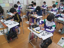 書写では、「大地」という字に取り組んでいます。書き初め大会の経験を生かして、力強い字になっていました。来週清書を行うので、さらにうまくなった作品が見られることを楽しみにしています。