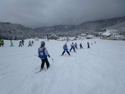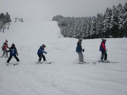 リフトに乗って、広いゲレンデで練習。バランスをとって、ハの字でシューっと上手に滑っていました。