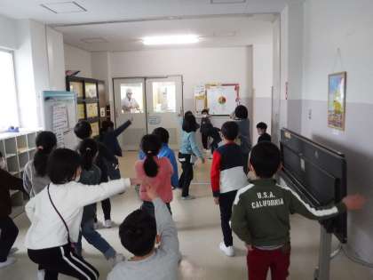 萩っ子タイムは、クラスみんなで遊びました。今日は、「だるまさんの1日」をすることになりました。