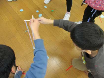 生き生きタイムに、生き物係が企画した「さかなつりゲーム」をしました。手作りの釣り竿や魚を使って、制限時間内にたくさん魚を釣るゲームでした。子供たちはたくさん魚を釣りあげようと一生懸命でした。