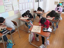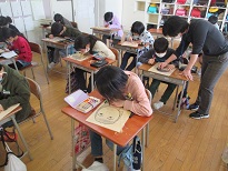 図画工作科では、版画を行っています。自分の似顔絵を描き、今週から彫り始めました。どのような作品になるのか、完成が楽しみです。