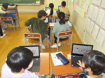 外国語活動では、友達にパフェにのせたい具材は何か質問し、クロームブック上で友達のお気に入りのパフェを作りました。自分たちの思い思いのパフェを楽しそうに作りながら、英語に親しんでいました。