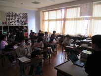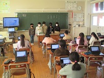 総合的な学習の時間では、今まで取り組んできて考えたことや身に付いた力等を3年生に伝えるために、スライド作りを行ってきました。来週には、3年生に発表したいと考え、今回はクラスに対して模擬発表を行い、よりよい発表になるように互いにアドバイスをしあいました。