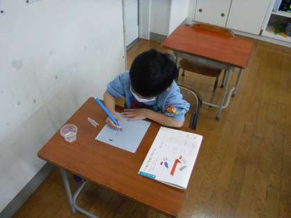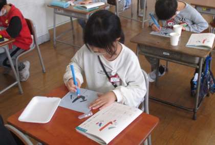 改めて字を書くときの姿勢に気を付け、筆の持ち方に注意しながら、「小」という漢字を書きました。