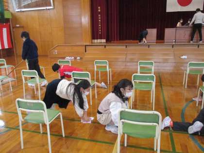 卒業式に向けて、会場をきれいに掃除しました。進んで働く姿に感心しました。