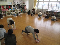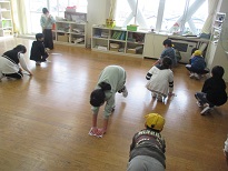 教室のワックスがけを行うために、みんなで教室の雑巾がけを行いました。コロナの影響でなかなか運動できないなかだったため、よい運動になったようで、「しんどい!」と言いながらも表情はとてもよい笑顔でした。
