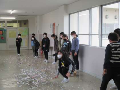 6年生を紙吹雪で見送りました。6年生が全員通りすぎた後、4階が静かになり、「さみしいね」と言っている子供がいました。手本を見せてくれた6年生さん、今までありがとうございました。これからは、5年生が、力を合わせてがんばります。