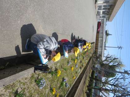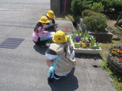 3年生から理科の学習が始まります。今日は、校庭やグラウンドの周りで、植物や虫などの生き物を探し、カードに記録しました。