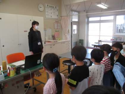 生活科の学習で、学校探検をしました。今回は、1年生の教室がある1階や、グラウンド、前庭を探検しました。少しずつ学校に慣れていきましょう。
