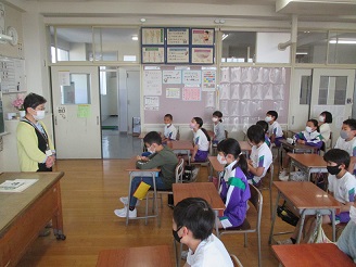 また、朝には読み聞かせがありました。1組は「7羽のからす」2組は「ものいうなべ」を楽しみました。