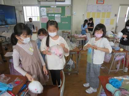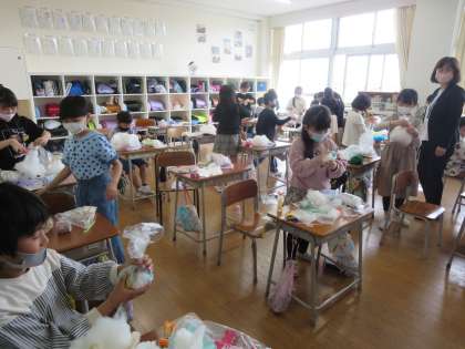 図画工作科で子供たちは夢中になって作品づくりに取り組みました。