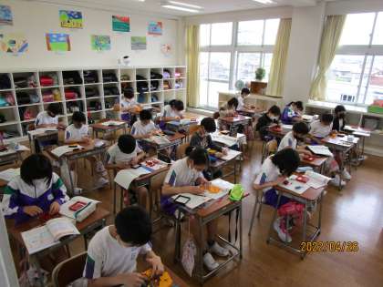 先日の算数科の様子です。子供たちは実際に1辺が1cm立方体のブロックを用いてどのような考え方で体積を求めることができるか真剣に考えていました。