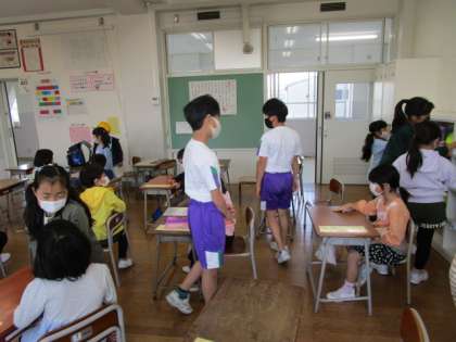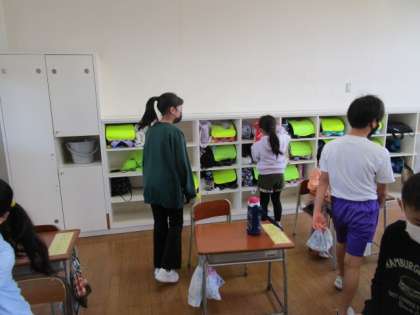 朝、1年生教室に行って、ランドセルの片付けを手伝ったり、挨拶運動をしたりしています。1年生と仲良くなって一緒に活動していきたいです。